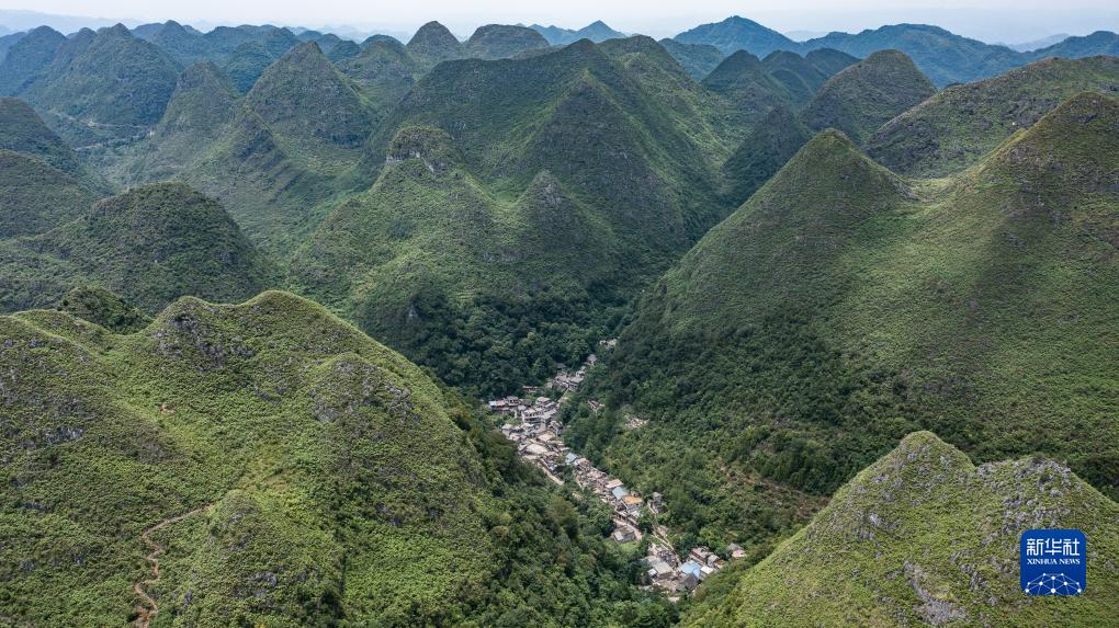 夏日,位于貴州省六盤水市六枝特區新窯鎮的播雨峰林綠意盎然,千姿百態的峰林景觀構成一幅美麗的生態畫卷。