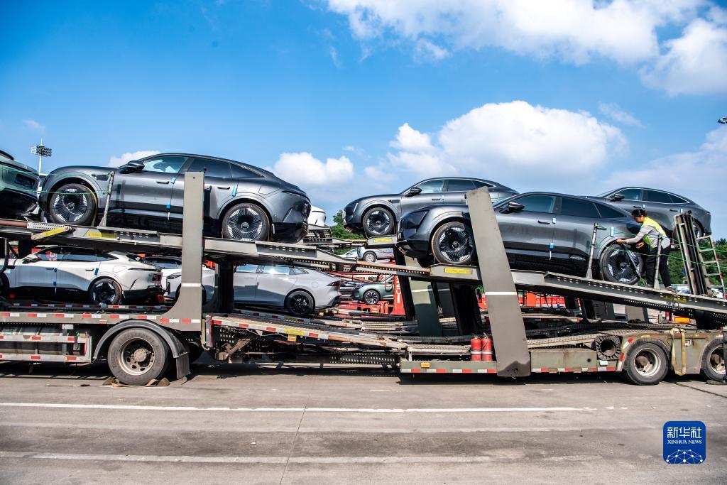 7月20日,在位于重慶市江北區的長安汽車整車分撥中心,新能源汽車阿維塔裝車發運。