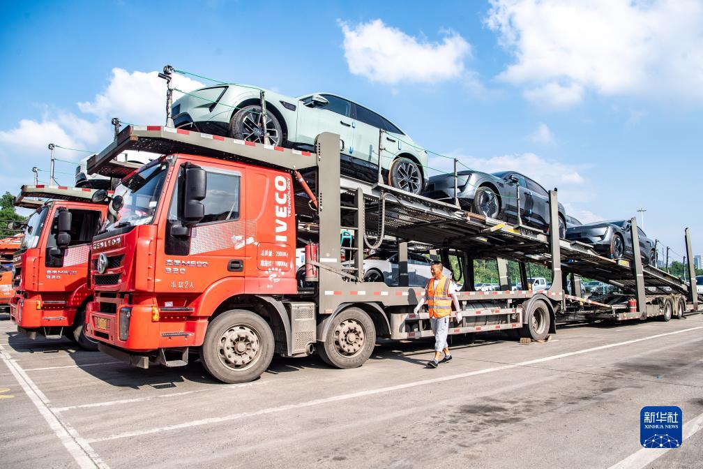 7月20日,在位于重慶市江北區的長安汽車整車分撥中心,新能源汽車阿維塔裝車發運。