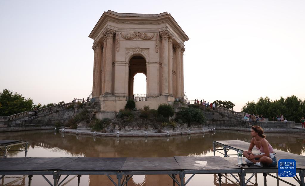 這是法國蒙彼利埃佩魯皇廣場上的水塔(7月17日攝)。