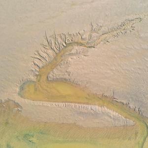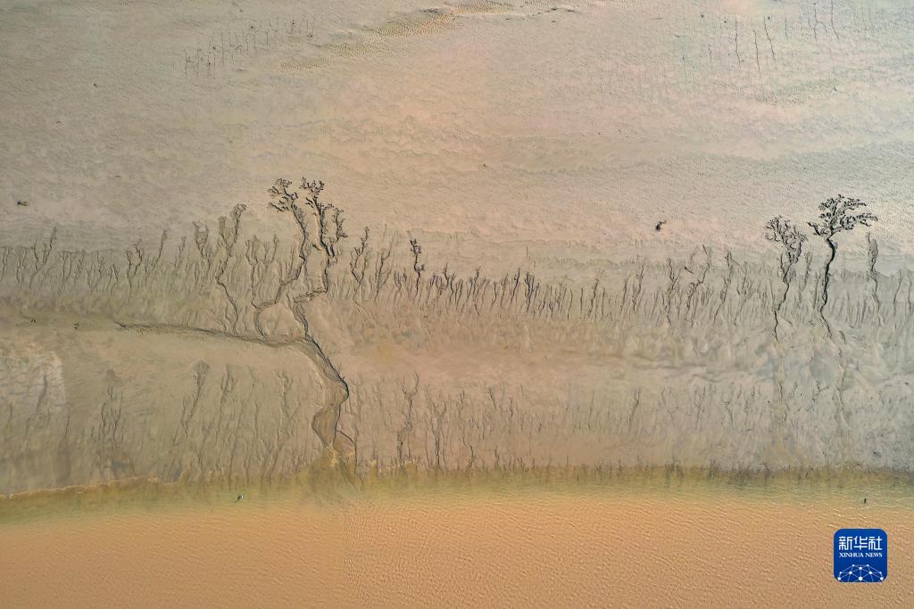 近日,隨著黃河調水調沙結束,黃河河南省開封市黑崗口險工段水位下降。河床被水流沖刷過后呈現出縱橫交錯的“脈絡”。