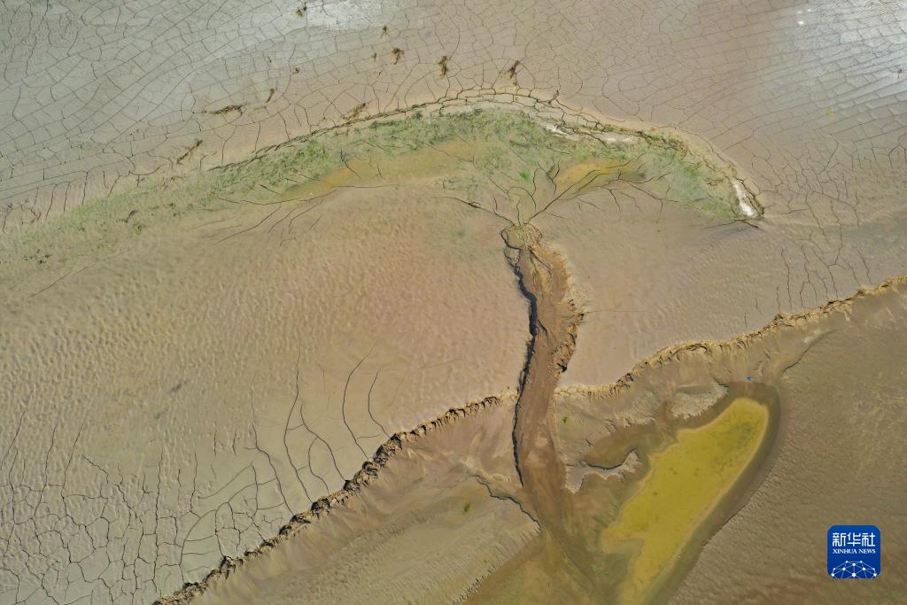 近日,隨著黃河調水調沙結束,黃河河南省開封市黑崗口險工段水位下降。河床被水流沖刷過后呈現出縱橫交錯的“脈絡”。