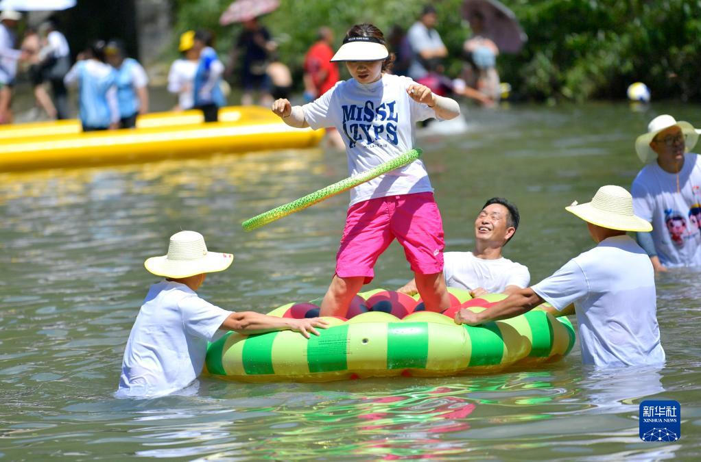 盛夏時節,湖北省恩施土家族苗族自治州宣恩縣高羅鎮板寮村舉行一場以“水上排球”“水上拔河”“水桶接力”“水上呼啦圈”等為內容的趣味水上運動會,吸引全鎮各村組隊參與。村民們在溪水中參與趣味運動,樂享清涼。