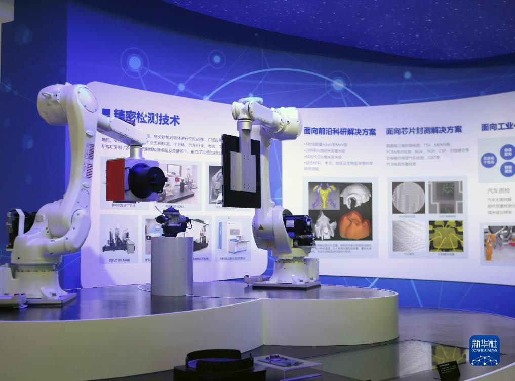這是7月24日在中科新經濟科創園展廳拍攝的精密檢測設備模型。