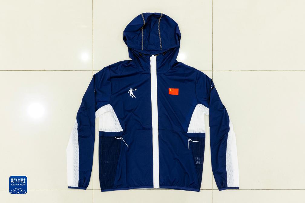 這是7月24日拍攝的第31屆世界大學生夏季運動會中國代表團成員配發裝備中的梭織單層夾克。