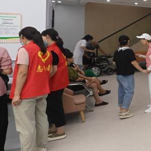 7月25日,居民(右)在諸暨市浣東街道東盛社區衛生服務站的智慧藥房內自助測量體重。