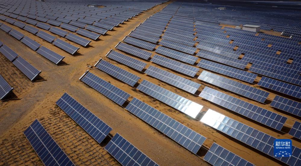 7月20日拍攝的寧夏中衛市沙漠光伏產業園光伏電站(無人機照片)。