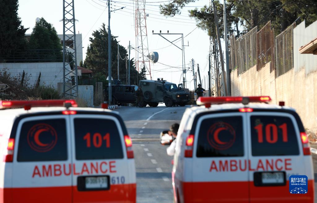 這是7月25日在約旦河西岸城市納布盧斯事發現場附近拍攝的救護車。
