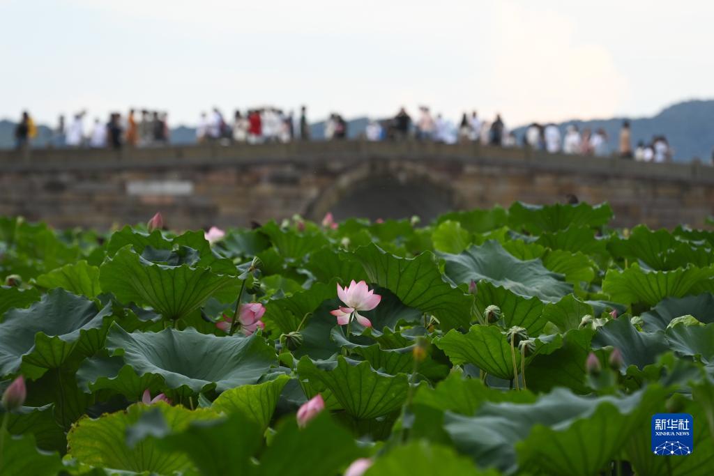 時值盛夏,杭州西湖景區荷花競相綻放,呈現出“接天蓮葉無窮碧,映日荷花別樣紅”的美麗景象。
