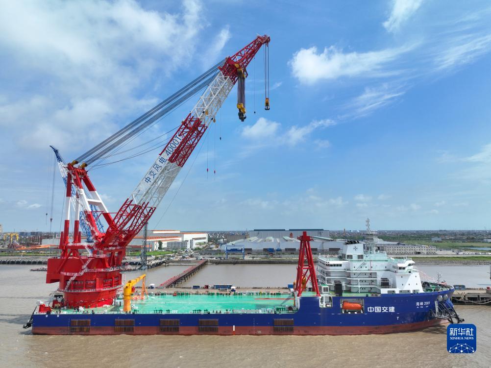 7月25日在振華重工啟東海工碼頭拍攝的4000噸全回轉起重船“海峰2001”(無人機照片)。