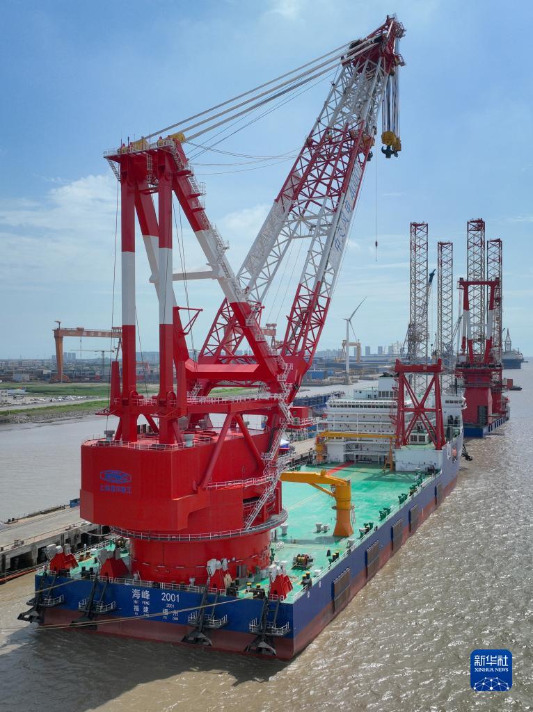 7月25日在振華重工啟東海工碼頭拍攝的4000噸全回轉起重船“海峰2001”(無人機照片)。