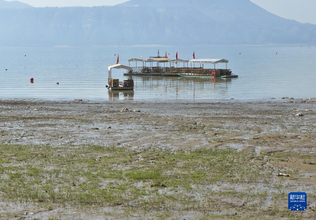 7月24日拍攝的低水位運行的劉家峽水庫。新華社發(史有東 攝)