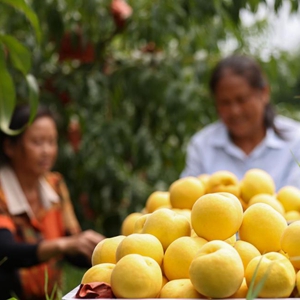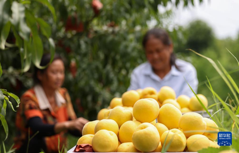 時下,貴州省銅仁市玉屏侗族自治縣種植的黃桃迎來收獲季,果農們忙著采摘、分揀、搬運黃桃,供應市場。近年來,玉屏侗族自治縣把發展黃桃產業列為鄉村振興工作的重要支柱產業,通過出臺政策支持、東西部協作資金幫扶、擴大種植面積、發展精深加工等措施,逐步發展壯大黃桃產業,促進當地農民持續增收。新華社發(胡攀學 攝)