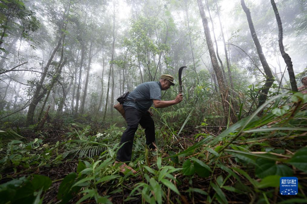 7月23日,張普忠砍開藤蔓和灌木,準備前往自己曾經住過的新民寨。新華社記者 費茂華 攝