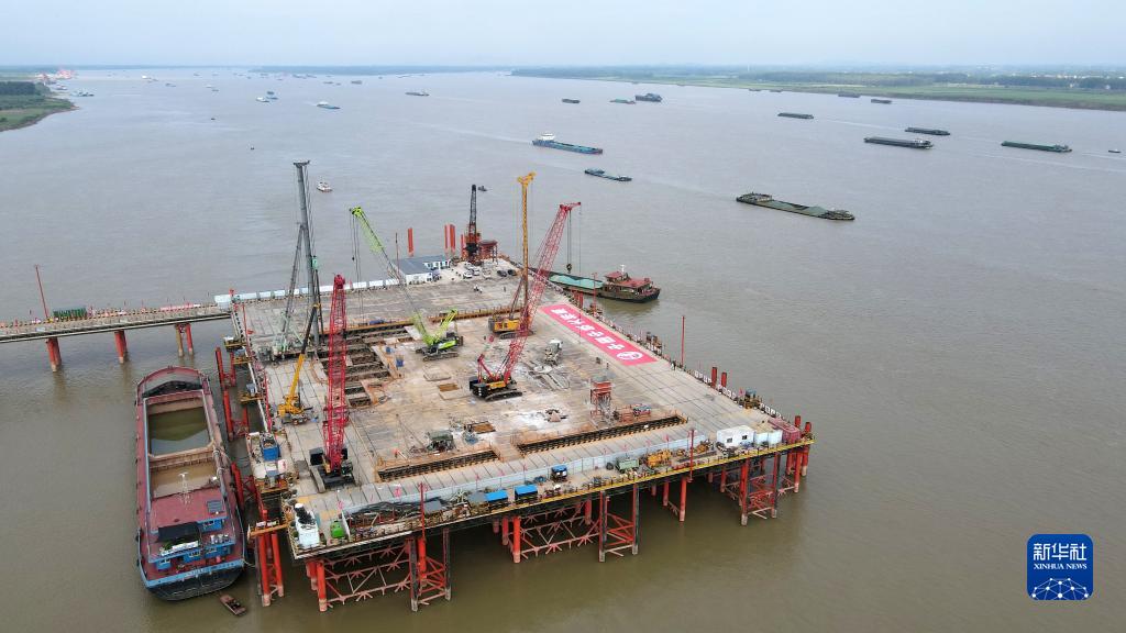 這是中鐵大橋局池州長江公鐵大橋南岸主墩鉆孔樁施工現場(7月26日攝,無人機照片)。