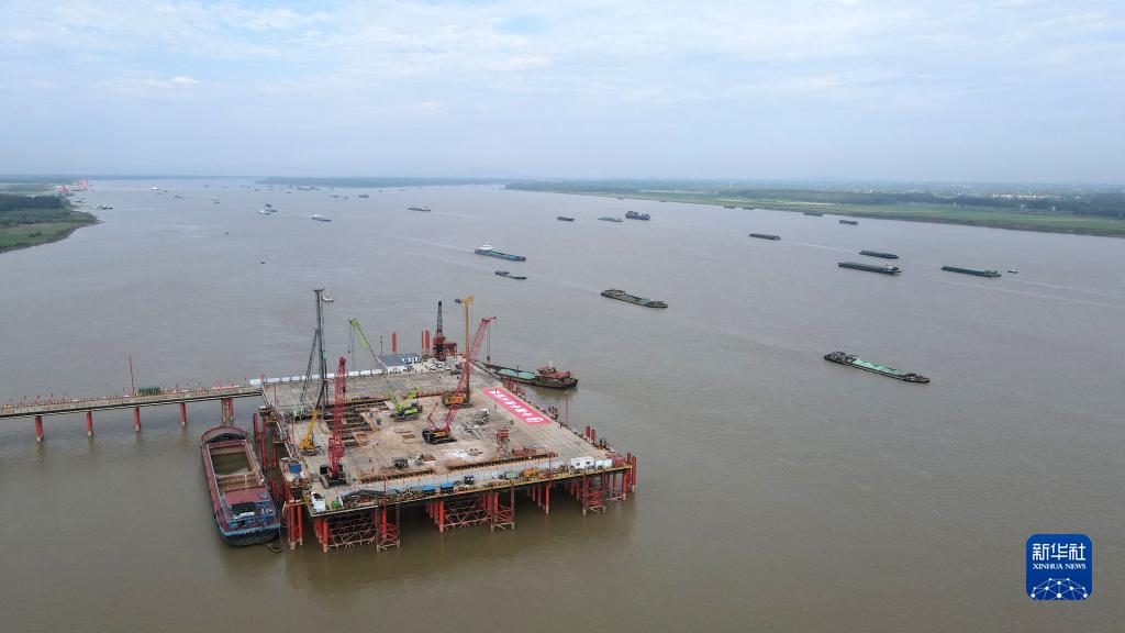 這是中鐵大橋局池州長江公鐵大橋南岸主墩鉆孔樁施工現場(7月26日攝,無人機照片)。