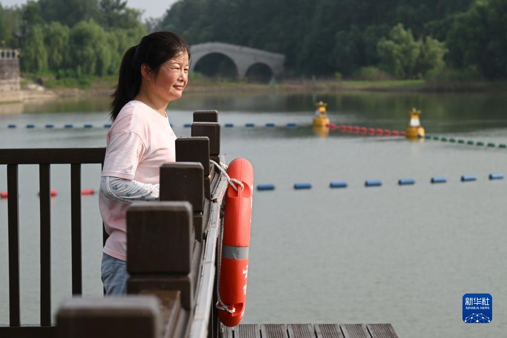 7月24日,陳蘭香在馬鞍山薛家洼長江邊眺望,不遠處是她當漁民時曾經停泊漁船的地方。新華社記者 周牧 攝