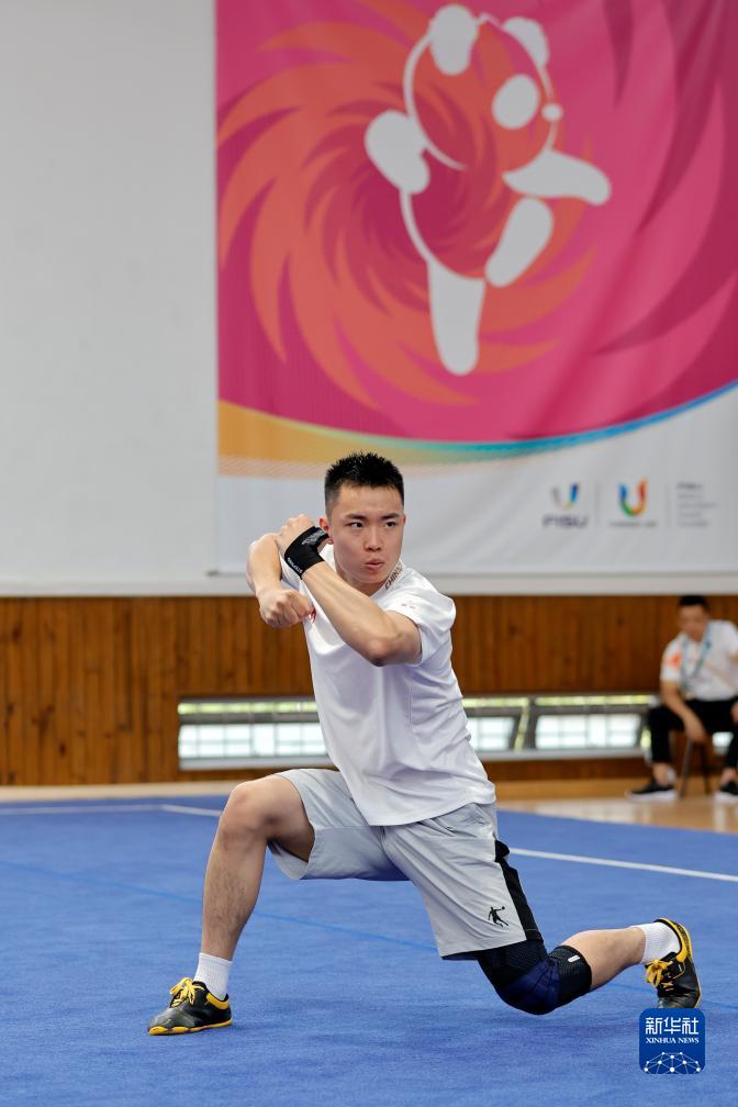 7月25日,參加第31屆世界大學生夏季運動會武術比賽的中國選手曹茂園在成都城北體育館訓練。