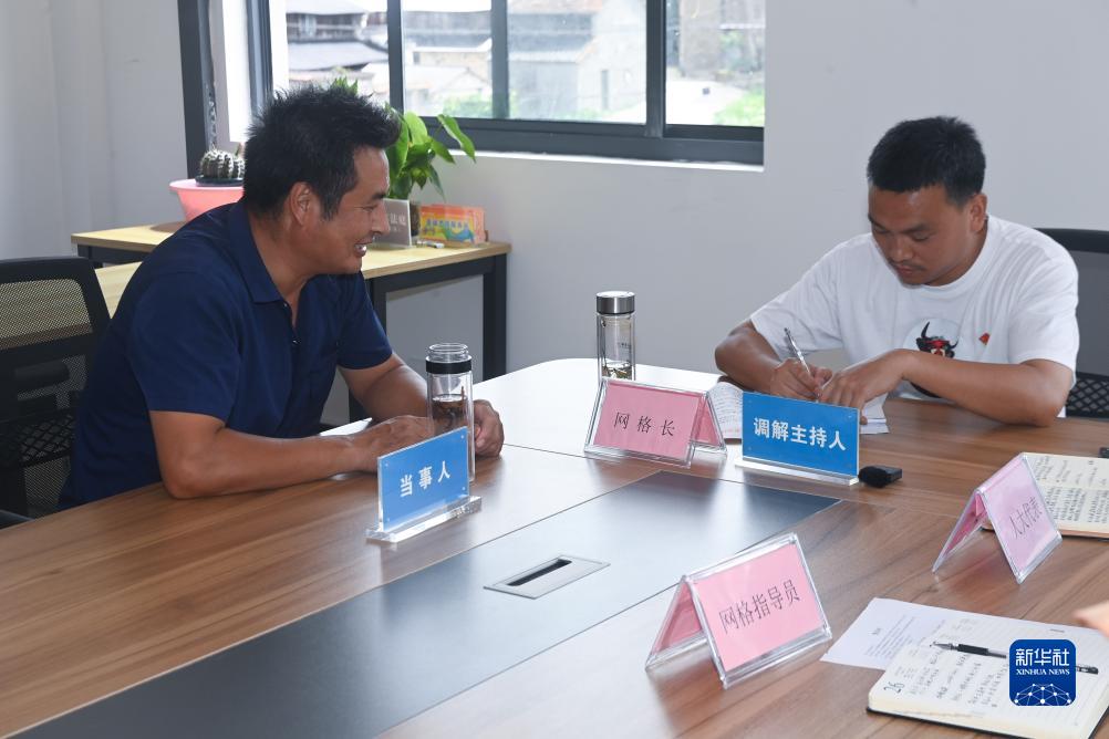 7月26日,在東白湖鎮婁東村新時代文明實踐站的文明共富會客廳內,網格長召集村里矛盾雙方當事人以及黨員代表、鄉賢代表、人大代表等成員進行宅基地指標糾紛的現場調解。