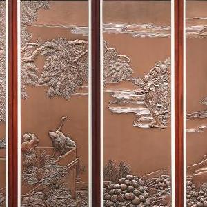 鏨銅雕刻也稱銅雕、銅鏨刻,是指利用銅的延展性,用鏨刀在銅器物上刻劃出各類圖案,距今已有上千年歷史。2021年,貴溪鏨銅雕刻入選國家級非物質文化遺產代表性項目名錄擴展項目名錄。完成一件銅雕作品,需要150多種不同的鏨刀和勾、落、點、采、絲等十多種技法。一把銅壺要經歷10萬次以上的敲打。