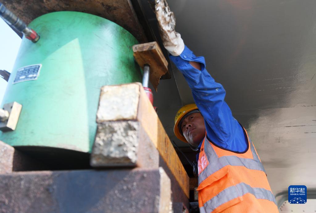 7月26日,在廣西賓陽縣境內,中鐵上海工程局工人在上橫高速公路施工現場作業。