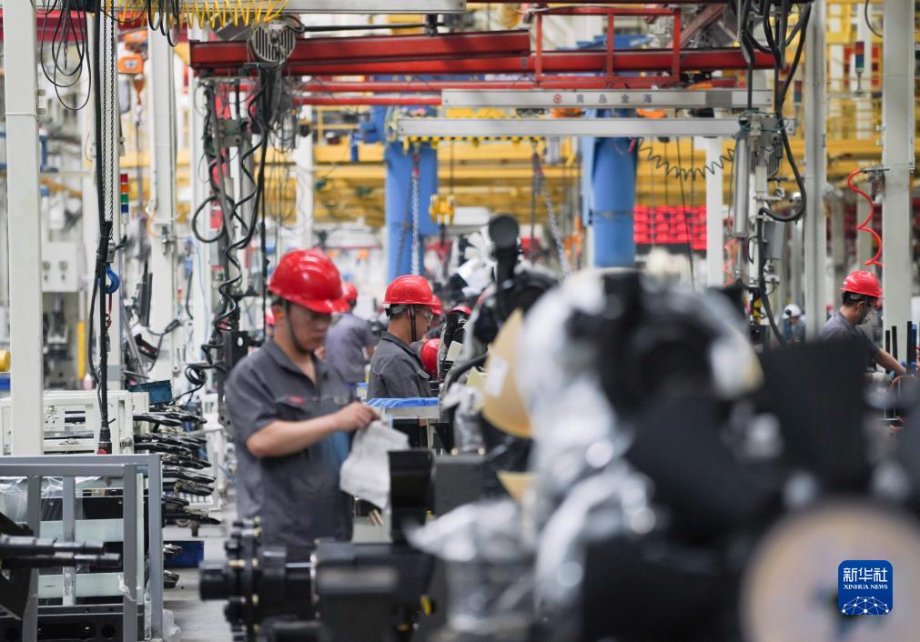 7月26日,在位于濰坊市的濰柴雷沃智慧農業科技股份有限公司,工人在生產線上忙碌。