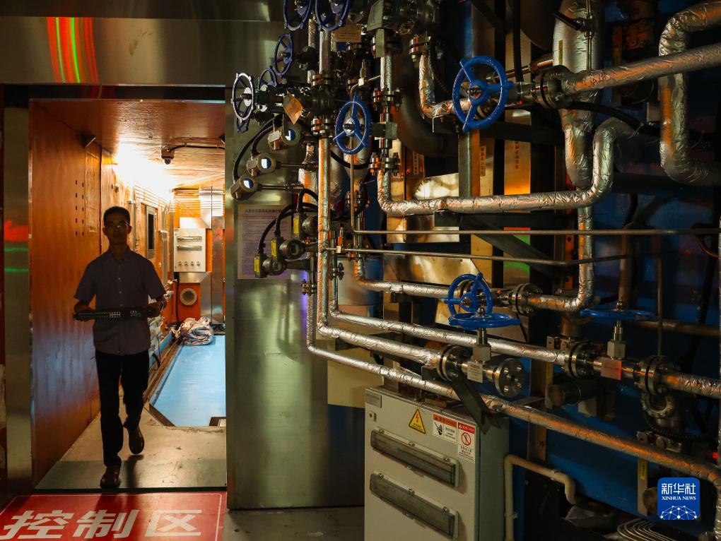 科研人員走出中國散裂中子源的微小角中子散射譜儀控制區(7月18日攝)。