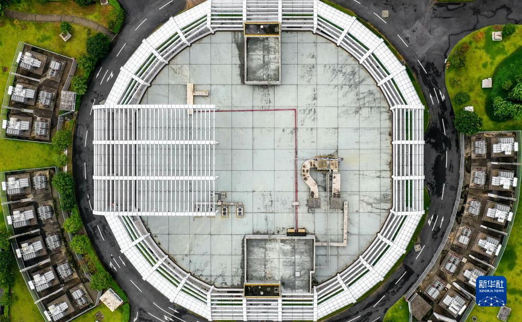 位于廣東東莞松山湖科學城的中國散裂中子源(無人機照片,7月18日攝)。