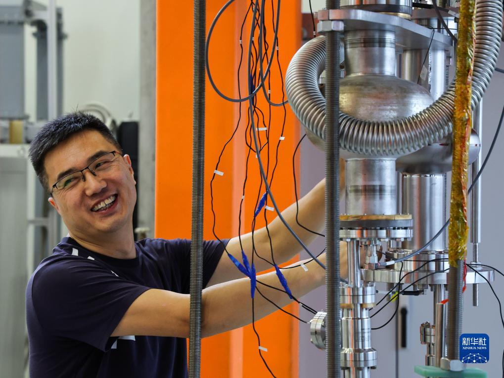 科研人員在中國散裂中子源加速器射頻技術實驗室維護設備(7月18日攝)。