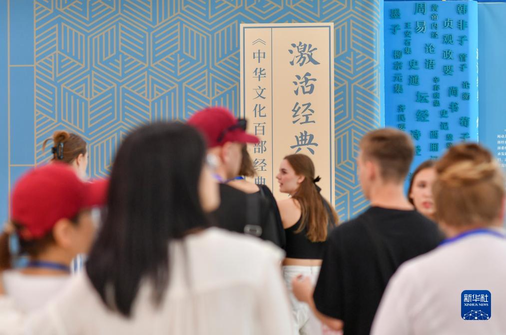 俄羅斯薩拉托夫州曙光歌舞團的歌舞演員在新疆圖書館參觀(7月23日攝)。