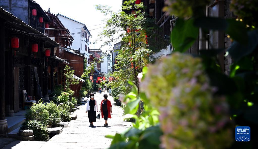 7月25日,游客在陜西省漢中市留壩縣城老街上游玩,老街上分布著多家民宿。