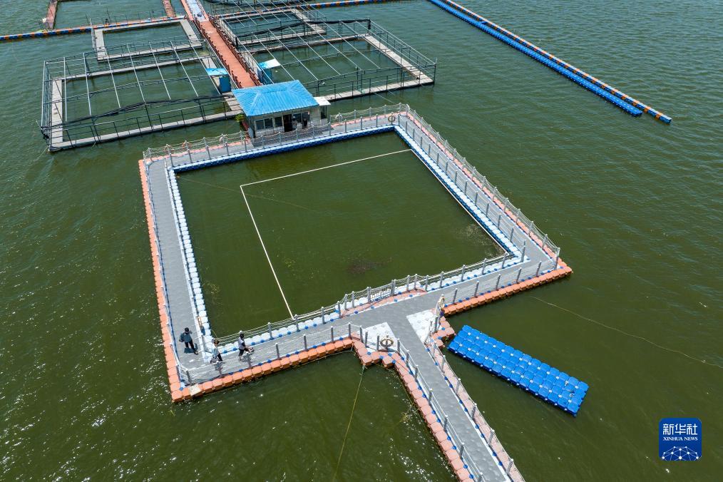 6月27日,中國科學院水生生物研究所工作人員在湖北長江天鵝洲白鱀豚國家級自然保護區忙碌(無人機照片)。