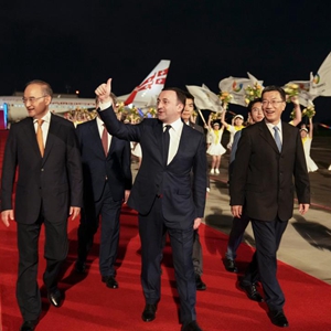 7月26日晚,來華出席成都大運會開幕式并訪問的格魯吉亞總理加里巴什維利抵達四川省成都市。新華社記者 江宏景 攝
