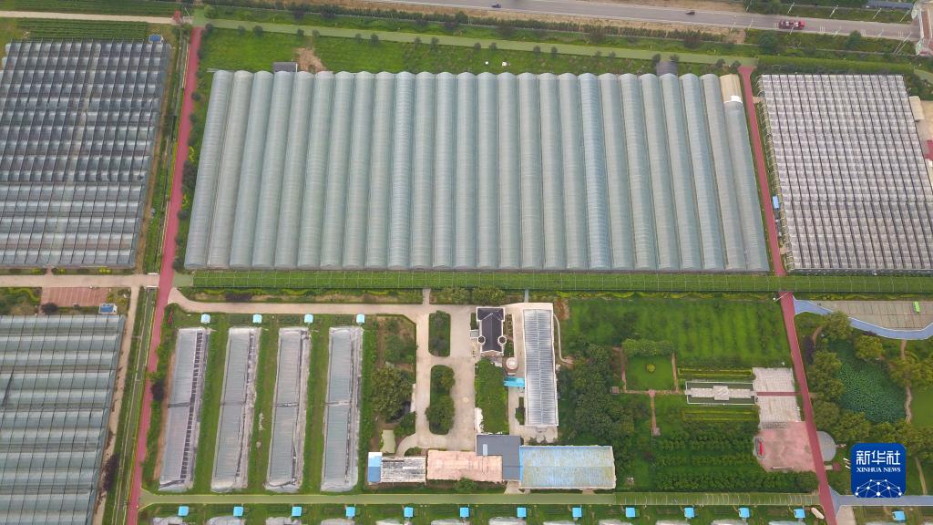 7月26日拍攝的位于山東省新泰市樓德鎮的高標準葡萄大棚(無人機照片)。