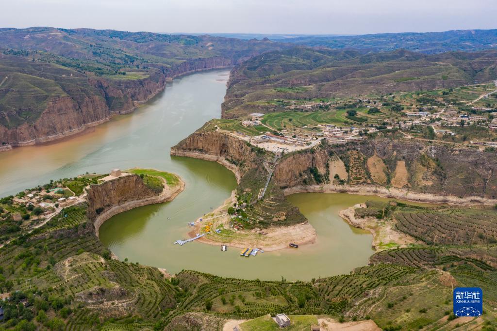夏日,從空中俯瞰位于山西省和內蒙古自治區交界處的黃河老牛灣,峽谷兩岸壁立千仞,黃河蜿蜒奔流不息,風景壯美如畫。