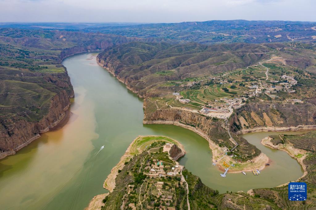 夏日,從空中俯瞰位于山西省和內蒙古自治區交界處的黃河老牛灣,峽谷兩岸壁立千仞,黃河蜿蜒奔流不息,風景壯美如畫。