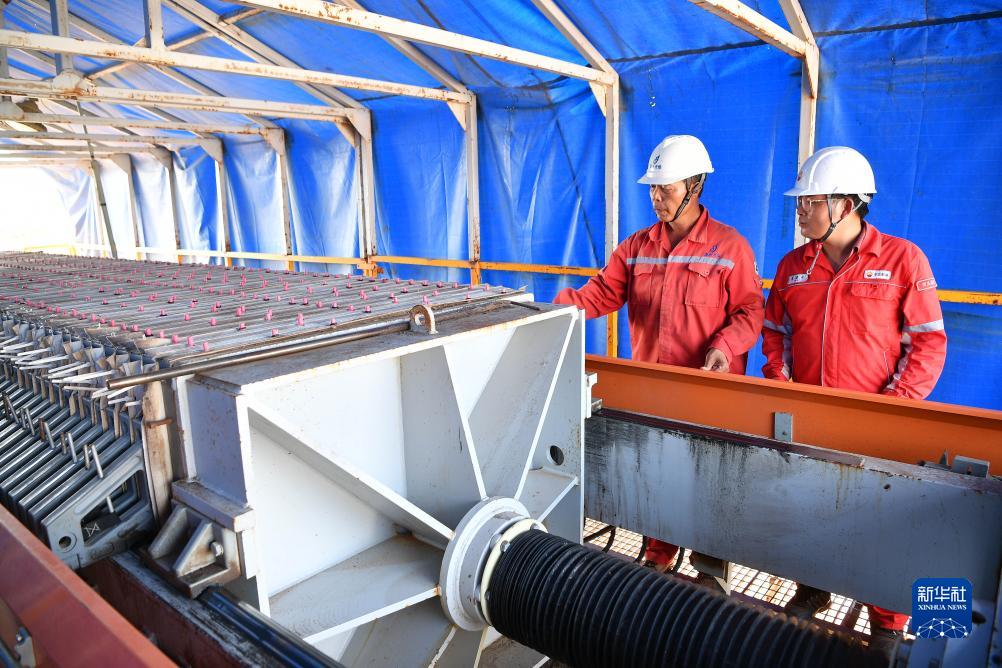 7月26日,在長慶油田蘇里格氣田一處鉆井現場,技術人員在介紹鉆井巖屑無害化處理過程。