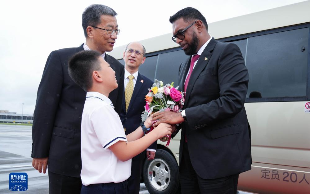 成都大運會丨來華出席成都大運會開幕式并訪問的圭亞那總統阿里抵達四川省成都市
