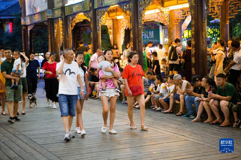 市民游客在都江堰市南橋里休憩(6月24日攝)。
