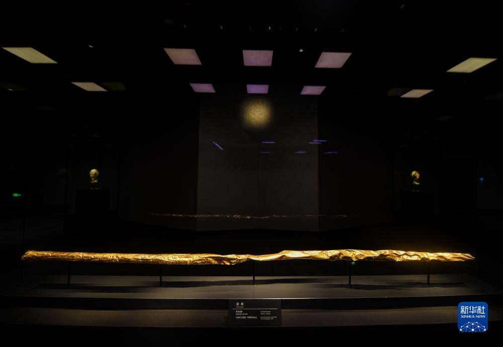 這是7月17日在三星堆博物館新館拍攝的金杖。