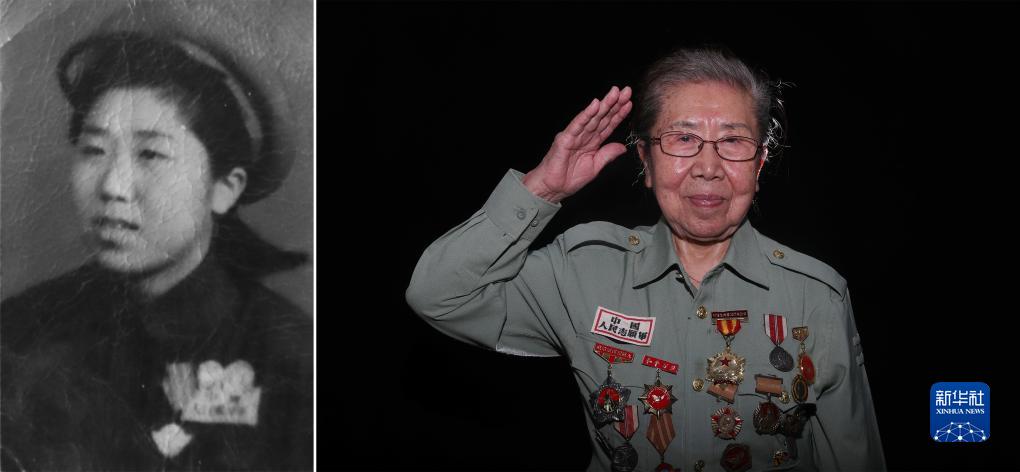 吳曉嵐(拼版照片,2020年9月9日攝),1934年出生于吉林省磐石縣黑石鎮。1948年2月參加革命工作,歷經遼沈戰役、平津戰役和抗美援朝戰爭,歷任護士、護士班長。