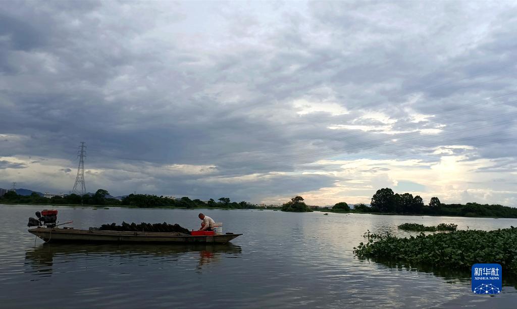 7月27日下午,漁夫在廣東省汕頭市江邊收漁網。