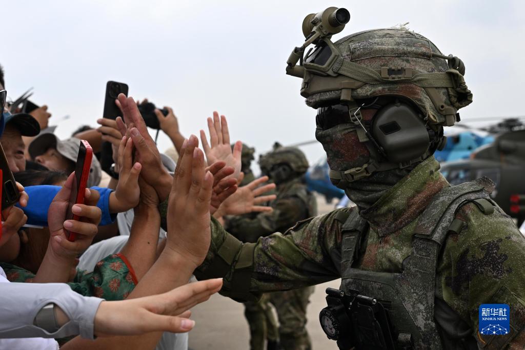 7月27日,在空軍航空開放活動·長春航空展首個公眾日,空降兵與觀眾進行互動。
