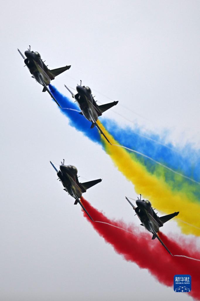 7月27日,在空軍航空開放活動·長春航空展首個公眾日,空軍八一飛行表演隊選用紅、黃、藍三色拉煙紀念抗美援朝戰爭勝利70周年。