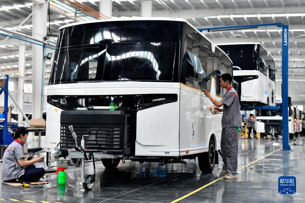 7月27日,在位于莒縣的大馳智能房車(日照)有限公司,工作人員在裝配房車。