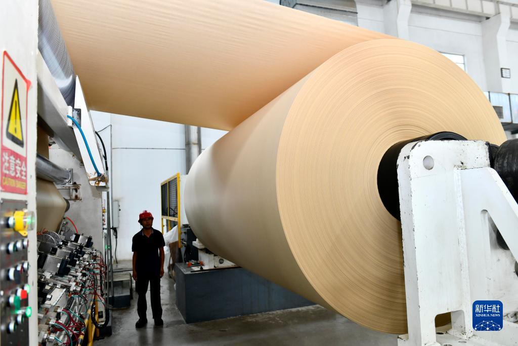 7月27日,在位于莒縣的日照華泰紙業有限公司,工人在生產線加工特種紙張。