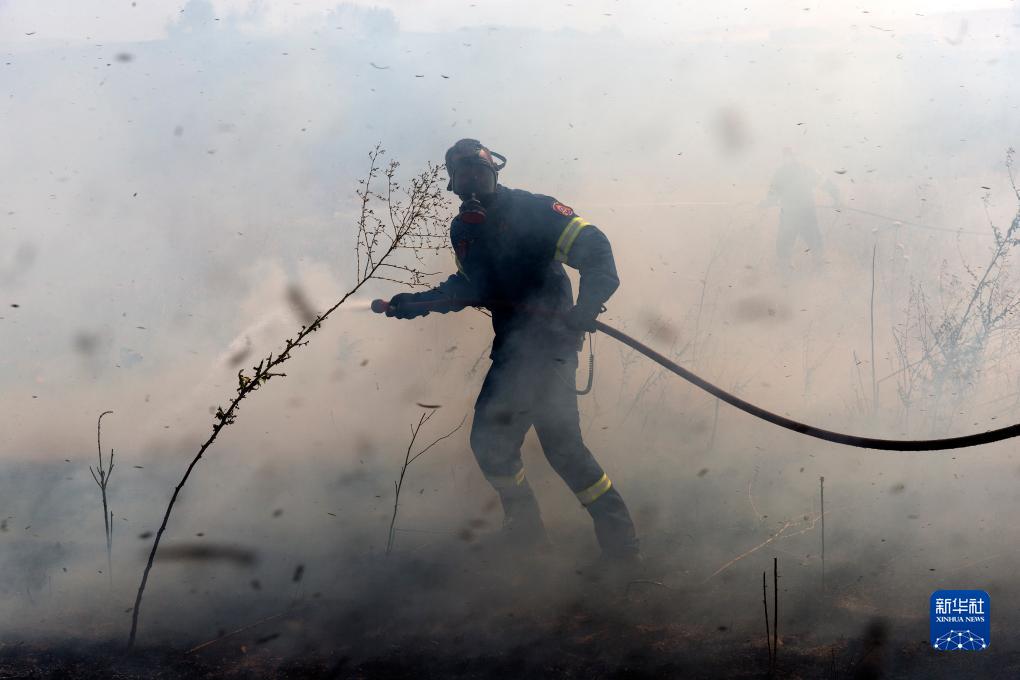 7月27日,消防員在希臘沃洛斯郊外參與滅火。新華社發(馬里奧斯·羅洛斯攝)