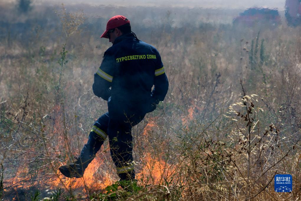 7月27日,消防員在希臘沃洛斯郊外參與滅火。新華社發(馬里奧斯·羅洛斯攝)