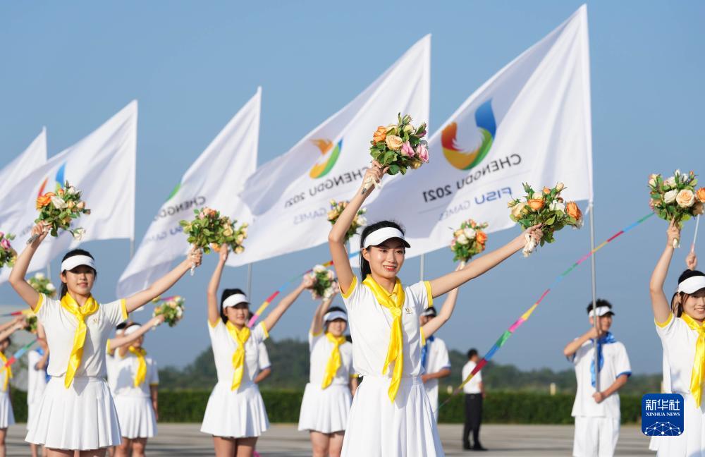 7月28日上午,來華出席成都大運會開幕式并訪問的布隆迪總統恩達伊施米耶抵達四川省成都市。這是歡迎儀式現場。