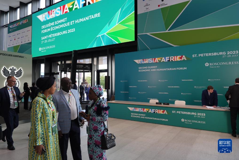 7月27日,在俄羅斯圣彼得堡,俄非峰會與會人員在會場交流。